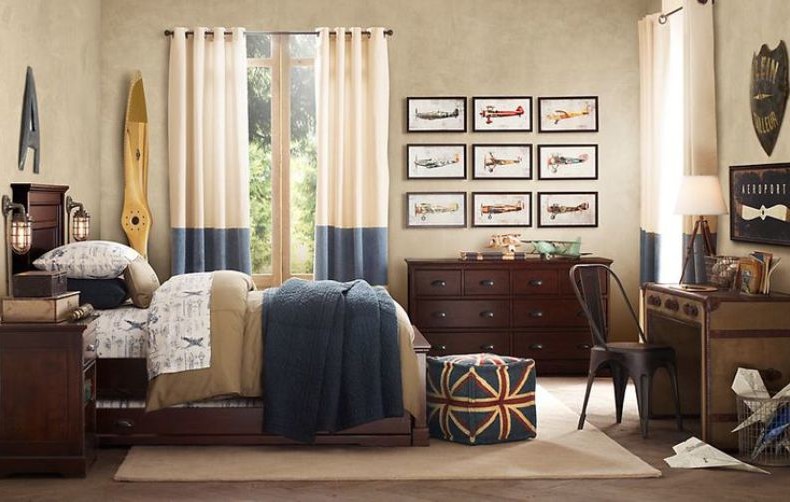Чтобы воспитать настоящего мужчину, покорителя космоса, бесстрашного автогонщика или успешного спортсмена, текстиль для его комнаты должен быть лаконичным, интересным и смелым. Тут вряд ли подойдут нежные розовые или сиреневые оттенки.
